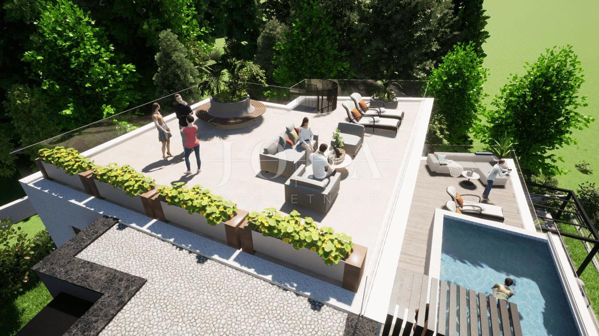 Stanovanje 3 v drugem nadstropju z 98,37 m2 notranje površine, 65,15 m2 zunanje površine in impresivno strešno teraso s površino 79,96 m2 ponuja ekskluziven prostor in nepozabno življenjsko izkušnjo na visoki ravni. Posebnost tega stanovanja je strešna terasa, na kateri lahko med sproščanjem ali druženjem s prijatelji uživate v zasebnosti in pogledu na celoten Kvarnerski zaliv. Sestavljajo ga kuhinja, jedilnica in dnevna soba, shramba, kopalnica in tri prostorne spalnice, vključno z glavno spalnico z lastno kopalnico. Stanovanje 3 ima poleg ogrevanega bazena velikosti 17,76 m2 s sistemom za protitok tudi 3 parkirna mesta, od katerih sta dve pokriti, in polnilno postajo za električne avtomobile. S toplotno fasado in talnim ogrevanjem proizvajalca Daikin je zagotovljen topel dom. Toplotna črpalka s hranilnikom tople vode zelo učinkovito proizvaja dovolj tople vode za porabo. Hlajenje je z najsodobnejšo tehnologijo dobavitelja Daikin na ravni A+++. 4 notranje enote so povezane z 1 zunanjo enoto z 8 kW. Ogrevanje in hlajenje se samodejno upravljata ločeno v vsakem prostoru.