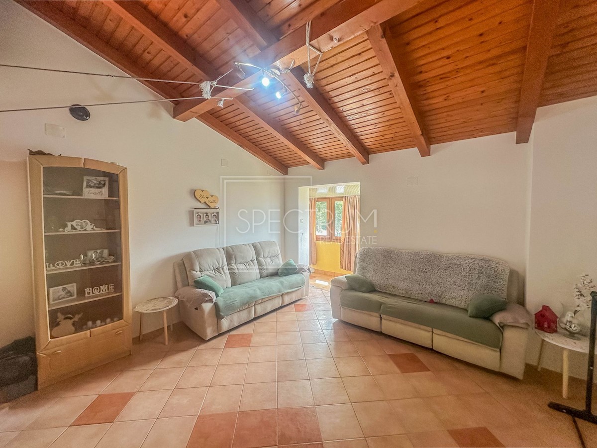 Istra, okolica Novigrada Prodamo stanovanje na mirni lokaciji v bližini Novigrada. Stanovanje se nahaja v 1. nadstropju stanovanjske stavbe. Površina stanovanja je 69,20 m2. Stanovanje je sestavljeno iz predsobe, dnevne sobe odprtega tipa s kuhinjo in jedilnico, 2 spalnici, kopalnice, zaprte terase na katero se dostopa iz dnevne sobe in pokritega balkona, idealnega za uživanje. Z balkona se odpira pogled na zelenje in naravo. Ogrevanje je preko klime in peči na drva. Stanovanje se prodaja opremljeno. Stanovanju pripada tudi zunanje stopnišče, ki vodi do stanovanja, pod stopniščem pa je shramba. Stanovanju pripada še zunanja shramba in parkirno mesto. Apartma se nahaja v majhnem in mirnem predmestju, 4 km od centra Novigrada in od lepih plaž. V bližini stanovanja se nahajajo promenade, kolesarske poti, park, igrišče, restavracije, kavarne, avtocesta in razni drugi objekti. Glede na to, da gre za 2-sobno stanovanje, ki se nahaja na mirni lokaciji, je stanovanje idealno za celoletno bivanje, pa tudi za počitnice.