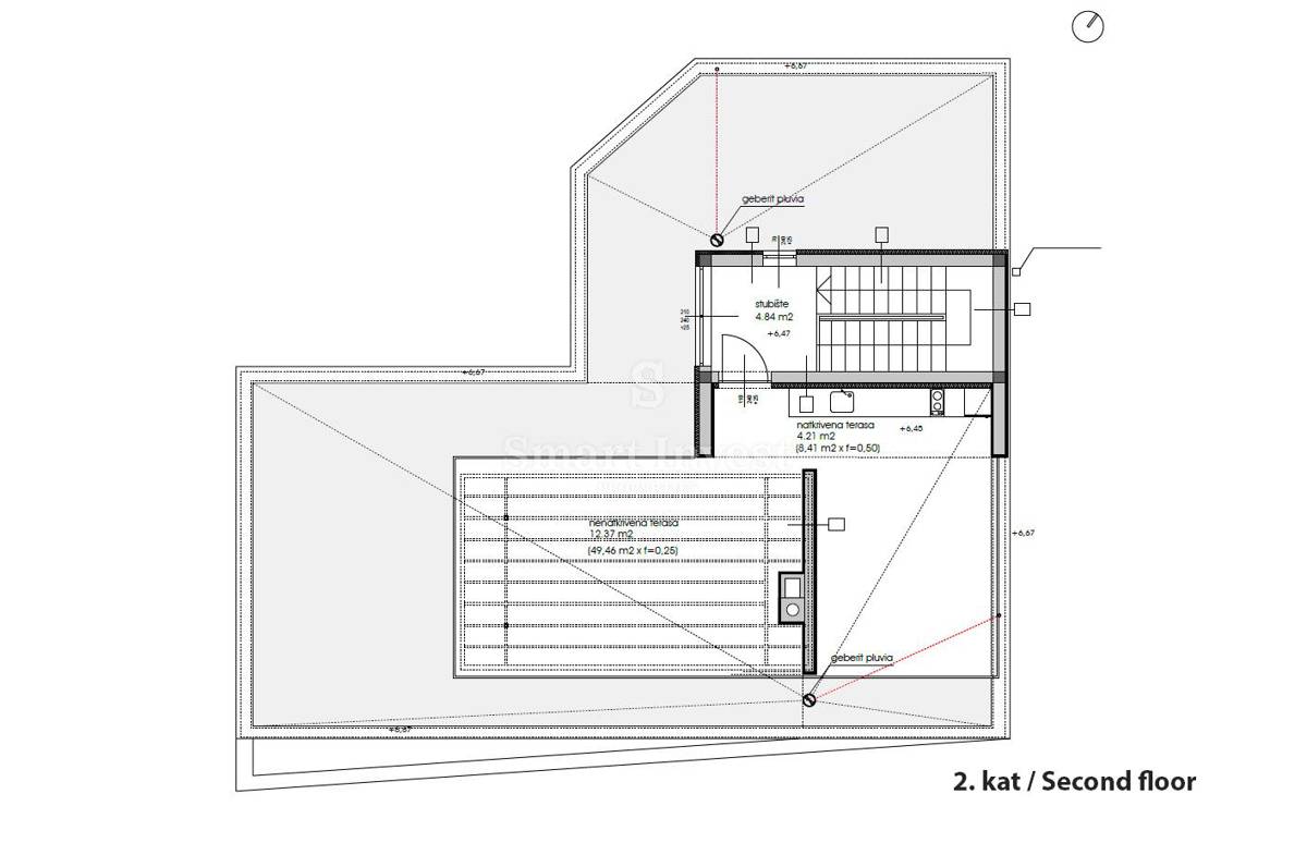 ISTRA - POREČ, Na prodaj je luksuzna vila z bazenom, wellnessom, čudovito strešno teraso s čudovitim pogledom na morje, na odlični lokaciji le 5 minut vožnje do morja in plaž. Predviden rok dokončanja je maj 2023. POSTAVITEV IN OPREMA Vila V01 z neto površino 290,72 m2 se nahaja na zemljišču 676 m2, ima 4 spalnice, 4 kopalnice + 1 WC. V pritličju je pokrit vhod, hodnik, prostorna dnevna soba s kuhinjo in jedilnico ter izhodom na pokrito teraso, wellness s savno in tušem, wc, pralnica, shramba. V prvem nadstropju je hodnik, 4 udobne spalnice z lastno kopalnico. Tri spalnice imajo izhod na prostorno teraso s čudovitim pogledom na morje. V drugem nadstropju je čudovita strešna terasa s čudovitim panoramskim pogledom na morje. Tukaj morata biti dnevni prostor in zunanja kuhinja s shrambo. • talno ogrevanje in sanitarna voda na heat pumo Mitsubishi + VRF inverterski sistem s 6 notranjimi klimatskimi napravami • kamin v dnevni sobi • ETICS termoizolacijska fasada • Keramične ploščice 1. klase v celotnem pritličju, parketi 1. klase v spalnicah in keramične ploščice 1. klase v kopalnicah • aluminijasta okna in drsne steklene stene s prekinjenimi toplotnimi mostovi in termoizolacijskimi stekli • alarmni sistem, video nadzorni sistem Na urejenem ozemlju se nahaja bazen 32 m2, hortikulturno urejene zelenice in 2 parkirni mesti. LOKACIJA Vila se nahaja na lepi mirni lokaciji, obdana s kvalitetnimi vilami in hišami, s čudovitim pogledom na morje. Vsa dnevna infrastruktura je v bližini (restavracije, vinarija, supermarket itd.), oddaljenost od morja in najbližjih plaž – 2,7 km, do centra Poreča – 8 km. Zaradi svoje izjemne lokacije v bližini morja in vseh potrebnih vsebin je moderna luksuzna vila primerna za udobno družinsko bivanje skozi vse leto, kot tudi za investicijo v turistične najeme. CENA Navedena cena se nanaša na popolnoma dokončano vilo na ključ, brez pohištva. Cena vključuje 25% DDV, kupec ne plača davka na promet nepremičnin. V primeru nakupa pri pravni osebi, registrirani na Hrvaškem, je možno vračilo celotnega DDV-ja po opravljenem nakupu. Za več informacij in dogovor za ogled pokličite: +385/91/320-0021