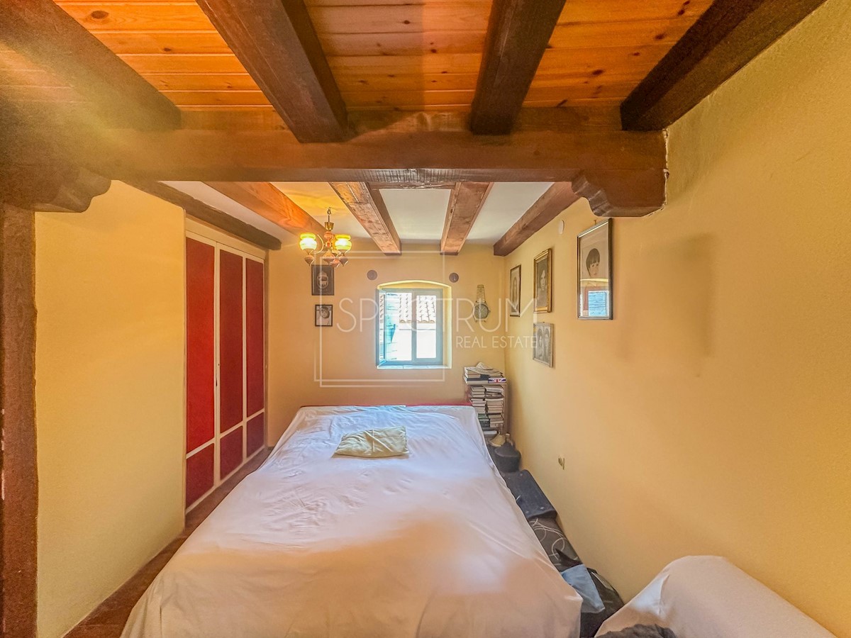 Istra, okolica Poreča Prodamo avtentično kamnito vrstno hišo na mirni lokaciji v bližini Poreča. Hiša obsega pritličje, 1. nadstropje in mansardo, površina hiše pa je 104,87 m2. V pritličju je predsoba, dnevna soba s kuhinjo in jedilnico ter kopalnica. Pritličje vodi na pokrito teraso, idealno za druženje na prostem. Notranje stopnice vodijo v 1. nadstropje, kjer sta 2 spalnici in WC. V mansardi je še ena spalnica. Hiša nudi pogled na naravo. Hiša je ogrevana s klimo. Hišo zaznamujejo avtohtoni istrski kamniti zidovi. Pred hišo je dvorišče velikosti 20 m2. Ob hiši je tudi javno parkirišče. Hiša se nahaja v majhni in mirni vasici le 4 km od centra Poreča in lepih ter urejenih plaž. V bližini hiše so sprehajalne poti, kolesarske steze, restavracije, kavarne, trgovine, park, igrišče in razni drugi objekti. Glede na to, da gre za istrsko kamnito hišo na iskani lokaciji, je hiša idealna za počitniški in turistični namen, pa tudi za družinsko življenje.