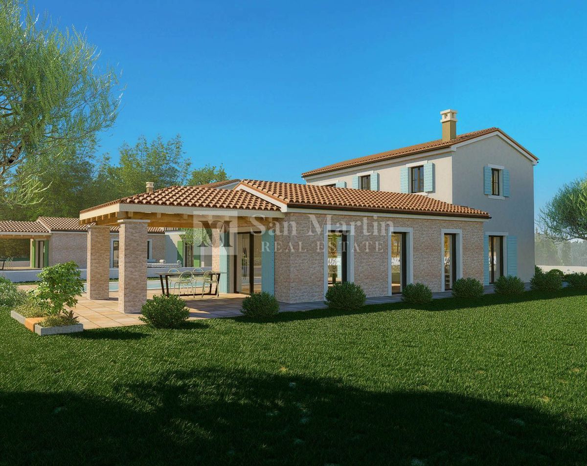 Poreč, okolica - odlična novogradnja s čudovitim razgledom. V bližini mesta Poreč je naprodaj odlična novogradnja s prostornim vrtom in lepim razgledom. V bližini nepremičnine je pošta, šola, igrišče, sprehajalne poti obdane z gozdom, za ljubitelje aktivnega življenjskega sloga pa so na voljo tudi športni objekti. Hiša ima 131 m2 bivalne površine, ki jo sestavljajo tri spalnice, vsaka s svojo kopalnico, prostorna dnevna soba in odprta kuhinja, ločen WC in posebna soba, v kateri je vsa elektronika za ogrevanje ter prostor za pralni in sušilni stroj. Hiša ima PVC stavbno pohištvo, celotno notranjo opremo vključno s keramiko in notranjim stavbnim pohištvom si lahko kupec izbere po lastni presoji. V delu prostora, ki je namenjen kuhanju, so pustili velik prostor za kuhinjski otok, celotna hiša pa je zavarovana s prvo stopnjo alarma. Nepremičnina ima talno gretje in vsaka spalnica ima svojo klimatsko napravo. Ta nova stavba je idealna priložnost za ljudi, ki želijo živeti v mirnem predelu mesta Poreč, obdanem z lokacijami, ki so bistvenega pomena za njihovo vsakdanje življenje. Velika prednost te hiše je, da kupec dobi čudovito novogradnjo s čudovitim vrtom, kamor lahko po lastni izbiri prinese notranjost, ki bo najbolj ustrezala njegovi družini. Z nakupom te nepremičnine pridobite prostor za celoletno kot tudi turistično bivanje v miru in naravi. Velika prednost te hiše je, da je obrnjena na zahod, kar pomeni veliko dnevne svetlobe, še posebej v prostoru, ki povezuje kuhinjo in dnevno sobo, z vseh strani pa je obdana z okni in drsnimi stenami, ki omogočajo neposreden dostop do bazena preko čudovite pokrite terase.