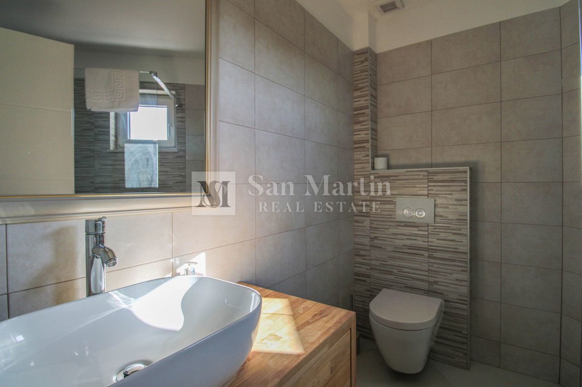 Poreč, Okolica - Čudovita Mediteranska Vila na Mirni Lokaciji V manjšem naselju, le 4 km od mestnega vrveža Poreča, se nahaja ta čudovita hiša z bazenom. Obdana je le z nekaj počitniškimi hišami in družinskimi hišami, zato je na odlični lokaciji za bivanje in preživljanje časa. Hiša, kot del dvojčka, se razteza na dveh etažah, s skupno bivalno površino 188 m² in 384 m² velikim vrtom z lastnim dovozom za dodatno zasebnost. V pritličju je vhodna veža, prostoren in svetel dnevni prostor s kuhinjo in jedilnico, z več izhodi proti bazenu in pokriti terasi. Tukaj je tudi spalnica z garderobo, lastno kopalnico in zunanjo teraso. V nadstropju so tri spalnice z lastnimi kopalnicami, ena izmed njih pa ima balkon s pogledom na morje. Celotna hiša je opremljena s kakovostnimi klimatskimi napravami, ki zagotavljajo idealno temperaturo skozi vse leto. Vrt je vzdrževan ter urejen z mediteranskim rastlinjem. Na pokriti terasi v pritličju se nahaja zunanja kuhinja z velikim žarom in jedilno mizo za druženja. V središču je ogrevan bazen, ki omogoča uživanje skozi celo leto, s pripadajočo zunanjo kotlovnico, kjer je nameščena potrebna mehanizacija. Tu je tudi wellness območje s savno in jacuzzijem. Hiša se prodaja opremljena, kar jo naredi idealno naložbo v dom, saj potrebujete le osebne stvari, da začnete uživati v njej. Nepremičnina je primerna tudi kot turistični objekt, saj ima v poletnih mesecih visoko zasedenost in omogoča dodaten prihodek.