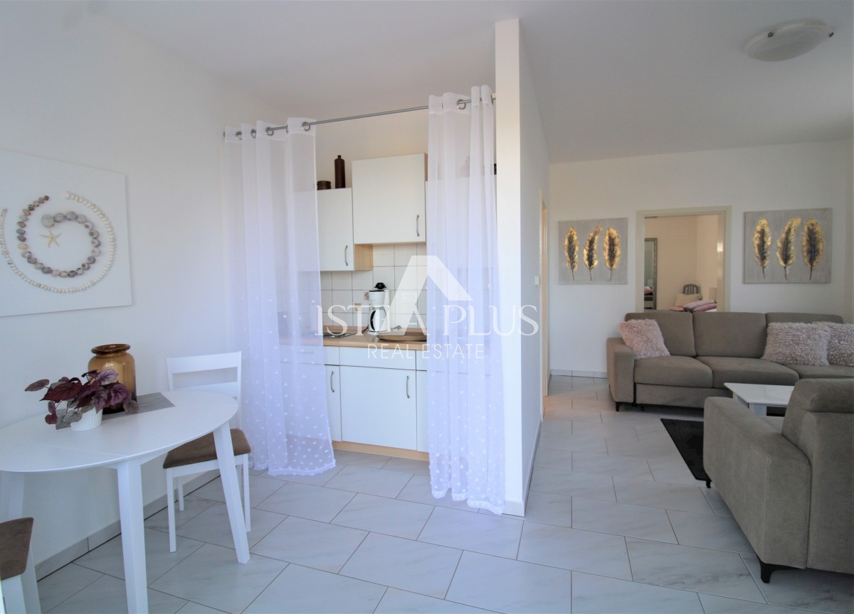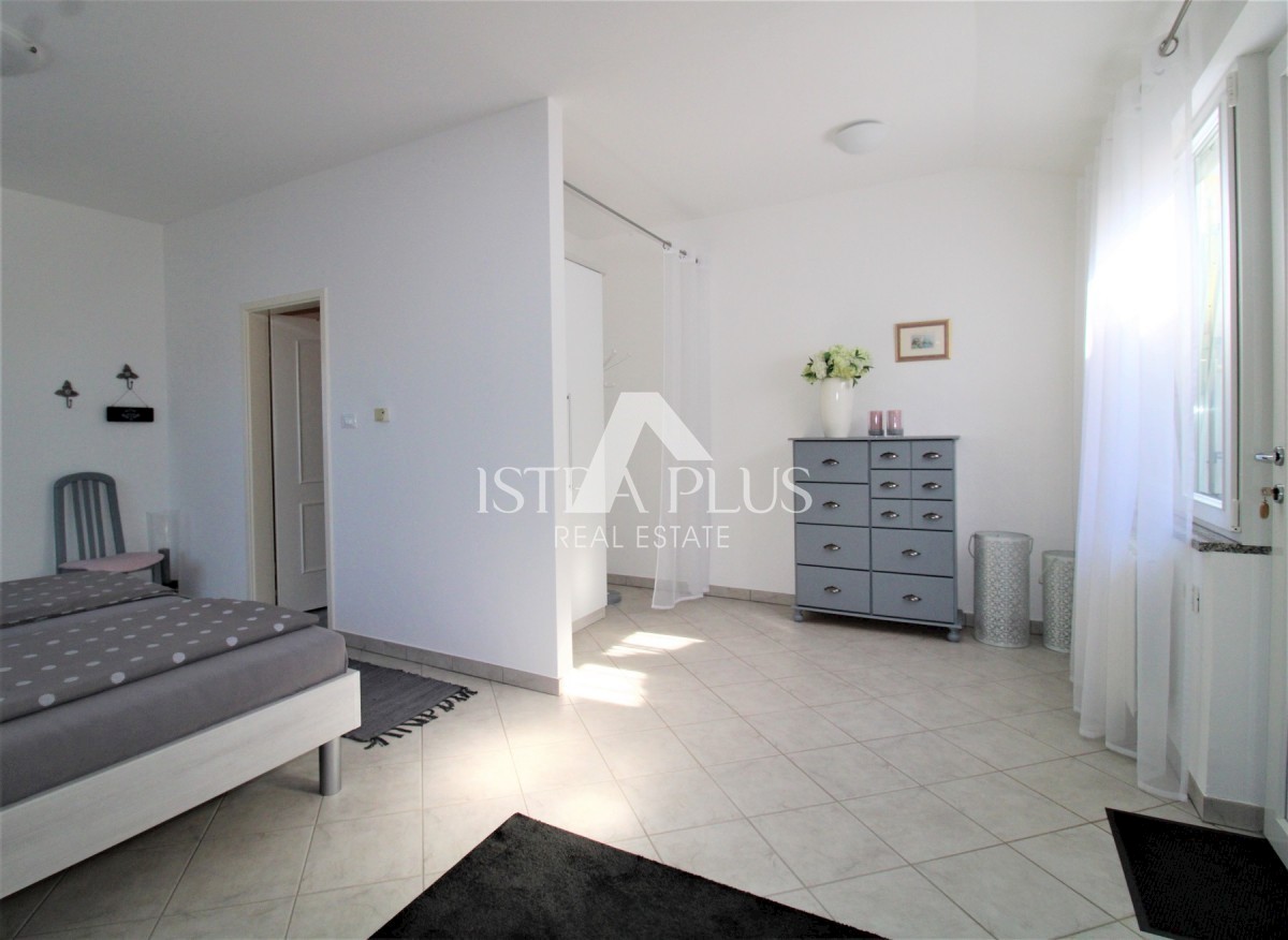 K47 Deset minut vožnje od Poreča in morja se nahaja ta čudovita nepremičnina, ki se nahaja na urejeni parceli velikosti 1.465 m2 (kar je pravzaprav dve gradbeni parceli). Sestavljen je iz vile s površino 220 m2, hiše za goste 134,90 m2 in garaže 40,73 m2. Vila je sestavljena iz pritličja in galerije, tam je hodnik, shramba, wc, nato dnevna soba z izhodom na veliko pokrito teraso in dvorišče, jedilnica prav tako z izhodom na teraso in kuhinja. V pritličju sta tudi dve spalnici in kopalnica. Zadnje dvorišče s pokrito teraso in prostorom za žar. V prvem nadstropju sta dve sobi, ki se trenutno uporabljata kot študijski/hobi sobi in lahko postaneta dodatna ena ali dve spalnici. Lepo urejen, vzdrževan vrt z oljkami, sredozemskimi rastlinami in trato. V pritličju, 133,62 m2 velikem gostišču, ki ponuja več možnosti, so trije studio apartmaji s 4 ločenimi vhodi, od katerih sta dva dnevna soba, kopalnica, kuhinja in terasa, tretje stanovanje z dvema kopalnicama, spalnico, dnevno sobo in dvema terasama ter dvema vhodoma, možna pa je ureditev še četrte garsonjere (samo pregradite jo s steno) - ali se odpreti in iz 4 garsonjer spremeniti v dva večja enosobna apartmaja, - Obstaja tudi možnost ureditve celotnega pritličja kot enote z 2-3 spalnicami. Prostorna garaža s kurilnico za centralno ogrevanje 48m2. Pogled na morje in očarljiv vrt idealen za miren in sproščujoč oddih od napornega in stresnega načina življenja. Hiše imajo centralno ogrevanje, ki je delno talno, solarni sistem, klimo in pokrito parkirišče za 4-5 avtomobilov. Zraven nepremičnine je gradbeno zemljišče velikosti 725 m2, ki se lahko odkupi, če kdo želi. Trenutno je na njem oljčni nasad, pridelujejo lastno oljčno olje. Nepremičnina idealna za bivanje in oddajo, vredna ogleda, urejena, lepa, vzdrževana in grajena kot brezčasen projekt, hrastov parket, kamniti detajli, prodaja se opremljena in opremljena. Po željah je dovolj prostora za bazen. Na 1,5 km je lokal, kjer je trgovina, kavarna, restavracija, šola in druge vsebine, Poreč in morje pa sta oddaljena 8 km.