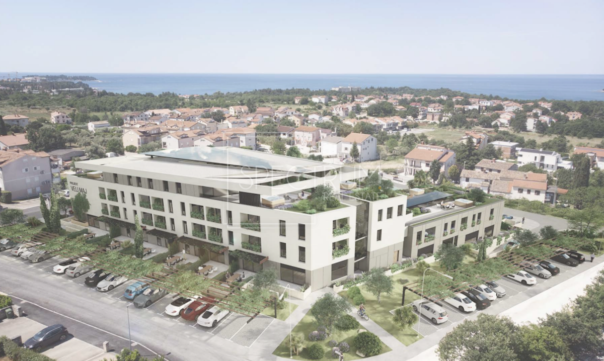 Istra, Poreč Prodamo novo stanovanje na iskani lokaciji v Poreču. Stanovanje se nahaja v 2. nadstropju novozgrajenega stanovanjsko poslovnega kompleksa, sestavljenega iz osrednjega, južnega in severnega dela. Površina stanovanja je 56,17 m2. Stanovanje obsega dnevno sobo s kuhinjo in jedilnico, 2 spalnici, kopalnico in hodnik. Stanovanje se prodaja po principu "ključ v roke" s popolnoma opremljeno kopalnico (pohištvo in sanitarna keramika), talne obloge v vseh prostorih (1. razred keramika, laminat), napeljano elektro inštalacijo, vgrajeno klimo, notranje mizarstvo, zunanjost pvc. ali ALU stavbno pohištvo, protivlomna in protipožarna vhodna vrata, antenski sistem, UTP omrežje ter bele stene in stropi. Apartma ima na uporabo bazen, idealen za uživanje v poletnih mesecih. Obstaja možnost dokupa dodatnega skladišča. Prikazana cena je cena z DDV. Apartma se nahaja na iskani lokaciji, le 1 km od morja in 2,5 km od centra Poreča. V bližini se nahajajo številne restavracije, kavarne, promenade, kolesarske poti, park, igrišče in razni drugi objekti. Glede na to, da gre za novo stanovanje na iskani lokaciji v Poreču, je ta apartma idealen za počitnice in turistične namene.