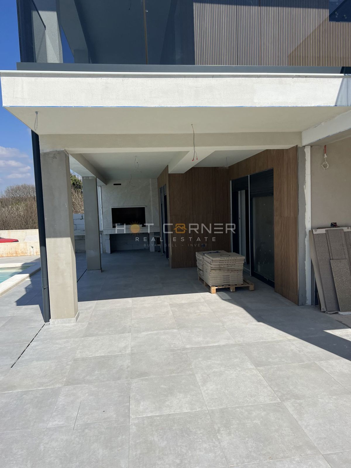 Lokacija: Južna Istra, slikovita vasica Šišan, oddaljena 2 km od osupljivih plaž s prodniki in ravnimi skalami, s pogledom na otoka Cres in Lošinj ter kristalno čisto morje. Nahaja se 8 km od mesta Pulj, ki ponuja vse potrebne vsebine. V središču vasi, približno 500 m od hiše, se nahajajo hotel s 4 zvezdicami, restavracija, kavarne, trgovina in pekarna. Nepremičnina: Na popolnoma mirni lokaciji, obdana le z družinskimi hišami in zelenjem, je naprodaj moderna in elegantna dvonadstropna hiša z bazenom. Hiša ima skupno površino 360 m² in naslednjo notranjo razporeditev: Pritličje – vhodni hodnik, prostorna dnevna soba odprtega tipa z električnim kaminom, kuhinja, jedilnica, spalnica, kopalnica in kotlovnica. V nadstropju, do katerega vodi notranje stopnišče, se nahajajo hodnik z garderobo, 3 spalnice, vsaka s svojo kopalnico in izhodom na lastno teraso. Vsaka izmed treh teras nudi čudovit in sproščujoč pogled na okoliško zelenje in bazen. Oprema: Talno gretje v celotni hiši, klimatska naprava v dnevni sobi in vseh spalnicah, protivlomna vhodna vrata, SAT/TV, popolnoma opremljena s kakovostnim in modernim pohištvom, vseljiva. Okolica vile: bazen s površino 32 m², prostor za sončenje, 4 parkirna mesta. Cena: 670.000 €. Za vse informacije in oglede: +38598829209 (Viber, WhatsApp) ali po elektronski pošti na: maja@hotcorner.hr