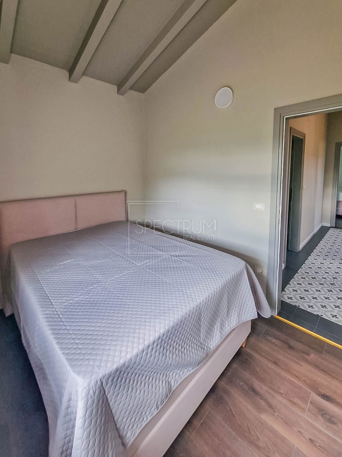 Istra, okolica Vižinade Prodamo kamnito vilo s pogledom na morje na mirni lokaciji v bližini Vižinade. Vila se razprostira v pritličju in prvem nadstropju, površina vile pa je 177 m2. V pritličju je predsoba, prostorna dnevna soba, kuhinja z jedilnico in izhodom na pokrito teraso z zunanjim kamnitim žarom, spalnica in shramba. Pokrita terasa je idealen prostor za uživanje. Notranje stopnice vodijo v prvo nadstropje, kjer je hodnik, 2 večji spalnici z lastno kopalnico ter 2 manjši otroški sobi in kopalnica. Ogrevanje je urejeno s kaminom v dnevni sobi in klimatsko napravo. Hiša nudi čudovit odprt pogled na morje in čudovito istrsko pokrajino. Vilo odlikujejo kakovostni materiali in pohištvo, avtohtoni kamniti elementi in visoki stropi. Vila se prodaja opremljena. Vila se nahaja na parceli, ki se nahaja na robu gradbenega območja. Površina parcele je 781 m2, od tega je 604 m2 urejenega in ograjenega vrta. V sklopu vrta se nahaja prostoren 45 m2 velik bazen, ki skupaj s prostorom za sončenje predstavlja idealen prostor za uživanje v poletnih mesecih. Dostop do parcele poteka preko električnih vhodnih vrat, ki takoj pripeljejo do prostora za več parkirnih mest. Preostali del vrta je zapolnjen z negovano zeleno trato in oljkami. Vila se nahaja na izjemno mirni lokaciji v majhni istrski vasici. V bližini vile se nahajajo restavracije, kmečki turizmi, kleti, sprehajalne poti, kolesarske steze, trgovine in razni drugi objekti. Vižinada je oddaljena le nekaj minut vožnje, Poreč in morje pa le 12 km. Ker gre za kamnito istrsko vilo z bazenom in pogledom na morje, ki se nahaja na mirni lokaciji, je vila idealna za oddih od mestne gneče, za turistične namene, pa tudi za mirno družinsko življenje.