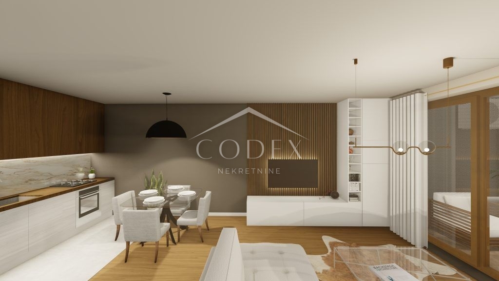 Na prodaj je luksuzen stanovanjsko poslovni objekt, ki se nahaja na Zametu, na lokaciji med Opatijo in Reko. Objekt ima čudovit panoramski pogled na morje Kvarnerskega zaliva in otok Cres. Stanovanja izpolnjujejo najvišje gradbene kriterije, njihova zasnova pa sledi moderni in luksuzni opremi. Objekt je bil zasnovan kot skoraj ničenergijska stavba z bistveno nižjimi stroški. Razteza se v 5 nadstropjih in obsega skupno 40 ekskluzivnih stanovanj s pripadajočimi parkirnimi mesti v podzemni garaži v sklopu objekta ter 4 poslovne prostore. Vse etaže so povezane z dvigalom, ki vodi iz etaže garaže v ciljno etažo. Vsi apartmaji so orientirani zahod-jugovzhod in imajo čudovit pogled na morje in Kvarnerski zaliv do Opatije. Stanovanja so razdeljena na enosobna, dvosobna in trisobna stanovanja s prostorno ložo, vsem pa pripada določeno število garažnih parkirnih mest in shramba. Glavne značilnosti objekta so ETICS fasada z mineralno volno debeline 10 cm, prezračevana fasada iz kompozitnih plošč, monolitna armiranobetonska nosilna konstrukcija, predelne stene med stanovanji iz blok opeke z izboljšanimi zvočno izolativnimi lastnostmi, predelne stene. proti hodnikom iz blok opeke dodatno toplotno in zvočno izolirane z mineralno volno, zunanje alu pohištvo WICONA s plinsko dvojno termoizolacijsko zasteklitvijo, talno ogrevanje in priprava PTV za toplotno črpalko z virom elektrike ali mestnega plina, in visoko energetsko izkaznico A+. V pritličju objekta so skupaj 4 poslovni prostori v Roh-Bau fazi. Na voljo je še en prostor v velikosti 144 m2 za tišje dejavnosti, kot so zdravniške ordinacije in poslovne pisarne, z namenom zagotavljanja kakovostnih bivalnih pogojev najemnikom stavbe. Predviden rok za dokončanje del je december 2024. Cena je po dogovoru in se nanaša na popolnoma dokončano stanovanje na ključ, brez pohištva. DDV je vključen v ceno, kupec je oproščen plačila davka na promet nepremičnin. V primeru nakupa pri podjetju, registriranem na Hrvaškem, je po prodaji možno celotno vračilo DDV. Vsi pomembni objekti v neposredni bližini. Oddaljenost od morja je le nekaj minut lahke hoje.